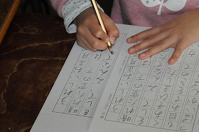 書き初めの練習をしています。