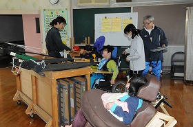 ことばかずの学習として、的当てをしています。当たったら点数を入れていきます。