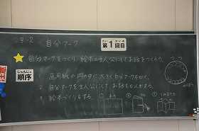 「自分マーク」を自分で作り、そのマークを主人公にして、お話を作っていきます。まず、自分マーク作りです。