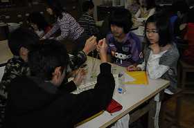 金属を溶かす水溶液を見つける実験をしています。