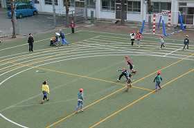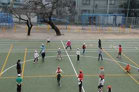 たて割り班ごとに決められた場所に行き、6年生が考えた遊びをしています。たて割班あそびで6年生がリーダーシップをとるのは今日が最後です。1月からは5年生が中心になります。