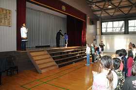 先週おこなった食缶ゼロデイの表彰をしています。7学級を表彰しました。