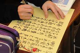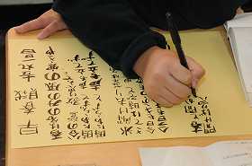 「早春賦」を筆ペンを使って視写しています。