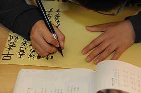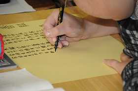 「早春賦」を筆ペンを使って視写しています。