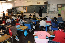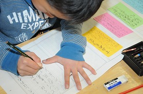 「わたしはおねえさん」の感想文を色別に内容を整理したカードを使って書いています。