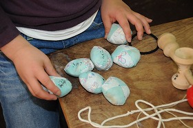 昔遊びの練習をしています。