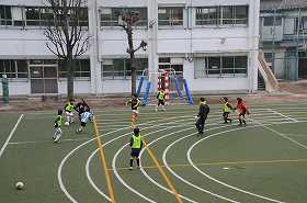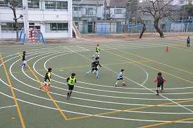 今年初めての朝練習です。寒いですが、子どもたちは元気いっぱい動いています。