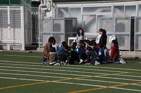 訓練が終わり、各クラスごとに集まって反省をしています。