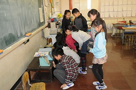 身の回りの物の重さを予想し、実際に量っています。