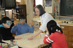 五つの水溶液を性質ごとに仲間分けをする実験をしています。