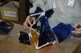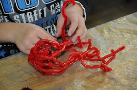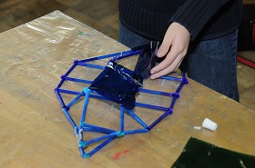 「空をおよぐ魚」をテーマに、ストロー、モール、セロハンを使って作品を作っています。
