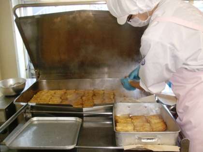 今日は鏡開きの日です。お正月にお供えした鏡餅を割り、1年の無病息災を願っていただきます。給食ではのしもちを1つ1つ油揚げに包んで甘く煮て、うどんの上に乗せました。おもちが出てしまわないように調理師さんたち4人がかりで丁寧に並べてくれました。
