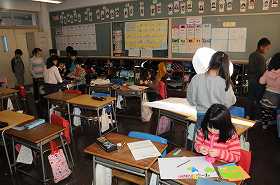 なの花まつりのクラスのお店の準備をしています。
