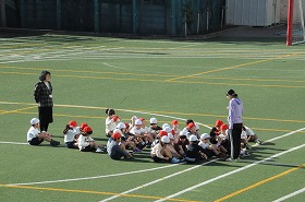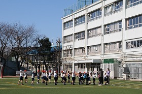 外で元気に体育をしています。