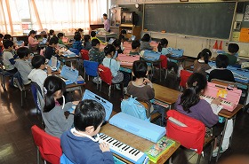 鍵盤ハーモニカの練習をしています。