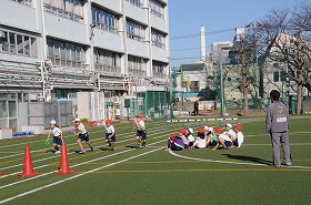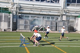 障害物リレーをしています。