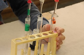 薄い塩酸に薄い水酸化ナトリウム水溶液を混ぜる実験をしています。
