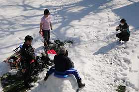 園庭でそり遊びをしています。