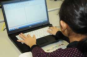自分が選んだ詩を、キーボードで入力しています。