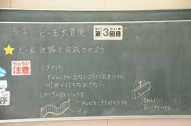 「ビー玉大冒険」をテーマに、ビー玉迷路を完成させています。