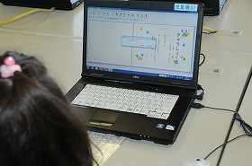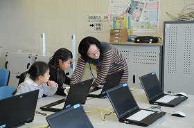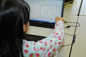 コンピュータを使って、自分ががんばったことに対する賞状を作っています。