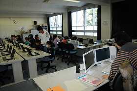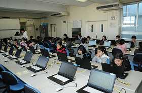 コンピュータを使って、自分ががんばったことに対する賞状を作っています。