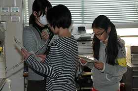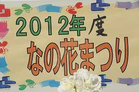 今年度のなの花まつりが始まります。まず、係の子どもが、始まりを伝えるアナウンスをしています。