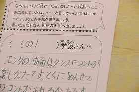 なの花まつりで自分が好きだったお店の感想を手紙に書いています。