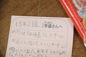 なの花まつりで自分が好きだったお店の感想を手紙に書いています。