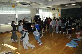 音楽に合わせて、体を動かしています。