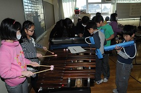 ゆかいな木琴の合奏の練習をしています。