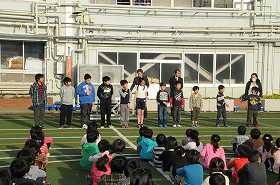 各学級で決めた目標を発表しています。インフルエンザ予防の目標が多いです。