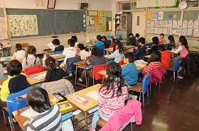 6年生との交流遊びを前に、6年生に手紙を書いています。