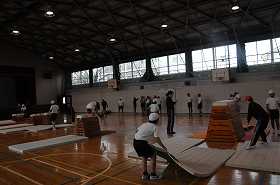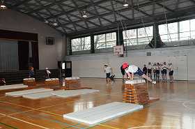 跳び箱の練習をしています。