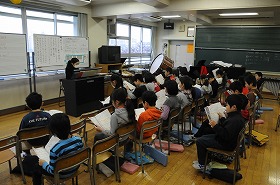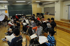 みんなで歌いながら互いの声を聞き、音の重なりを確かめています。