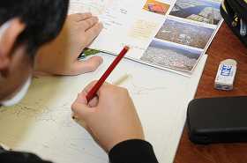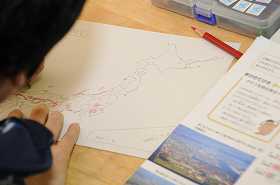 工業の盛んな地域を資料から読み取り、白地図にまとめています。