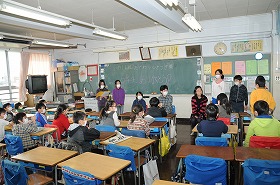 今日のなの花タイムは、縦割り班の引き継ぎです。14の縦割り班の教室に分かれ、今年1年間お世話になった6年生に感謝の気持ちを伝えるとともに、5年生がリーダーとしてデビューしました。