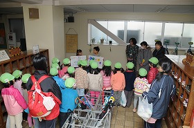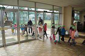 今日は、1年生が近隣の保育園の年長さんを迎え、交流します。年長さんが到着しました。