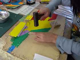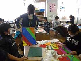 「ビー玉大冒険」をテーマに、たくさんのしかけを作り、ビー玉迷路を作っています。
