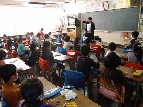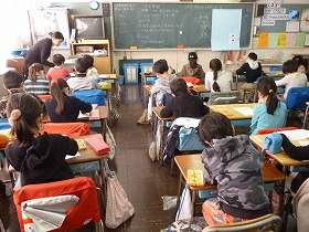 来年入学してくる1年生のために、夏の学校の様子を絵で描いています。