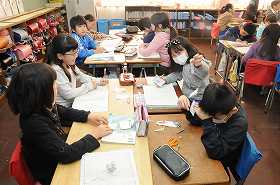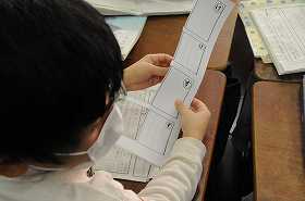 「かるた」のまとめとして、自分たちでかるたを作っています。