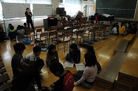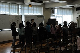 「歌おう 声高く」をグループに分かれて練習しています。
