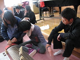 1組の生徒が四中で琴の体験をしています。