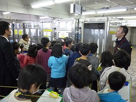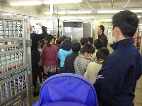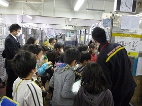 目黒郵便局の中を見学させていただき、郵便がどのように送られるのかを実際に見たり聞いたりしています。