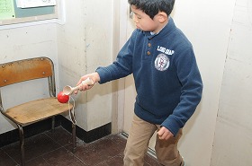 昔遊びの練習をしています。
