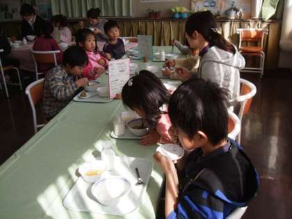 子ども達は久しぶりのランチルーム給食を楽しんで味わっていました!