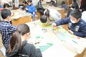 「ビー玉大冒険」をテーマに、ビー玉迷路を完成させています。