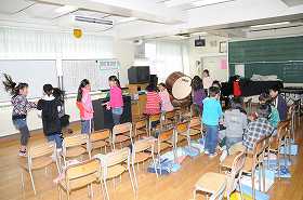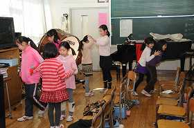 「えがおできょうも」を楽しく歌うために、歌に合わせる動作を考えています。