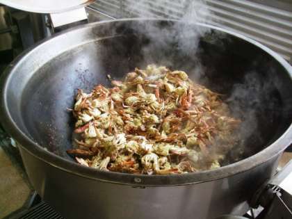 渡り蟹は殻ごと炒めてスープで煮て、おいしいダシをソースと合わせました。殻ごとソースに和えられれば見栄えもするのですが、爪の部分がとがっていて少し危険なので入れませんでした。(写真だけ乗せてあります)
