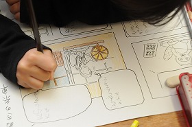 たぬきの糸車の紙芝居を作っています。